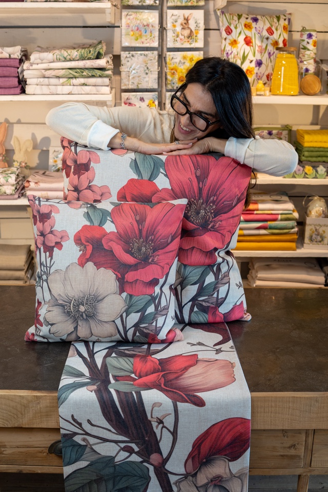Runner in misto cotone con decorazione nella parte frontale, back in satin.